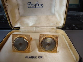Coffret boutons de manchette rainurés dorés plaqué or