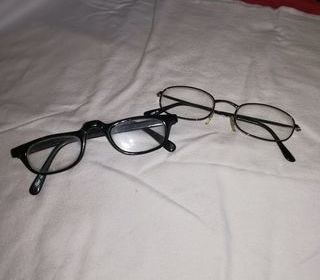 Deux paires de lunettes loupe pas portées une en métal et une plastique noire
