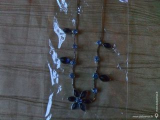 Parure de 2 bijoux bleu et argenté : collier + broche assortis. Idée cadeau! 8€ les deux. Neufs dans l'emballage.