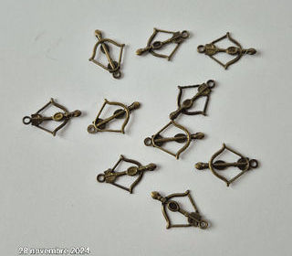 Lot de 10 breloques , pendentifs arbalète ou arc en bronze pour déco, bracelet dimensions 4.5 cm de long