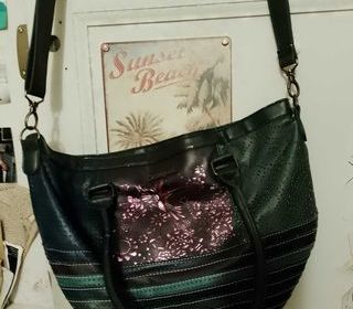 ce sac à bandoulière noir motifs bleus/ roses Desigual est en bon état.