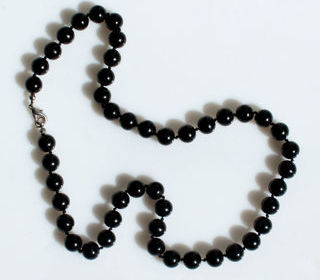 Joli collier de perles en pierres d'onyx noire ou agate Entre chaque perle un noeud pour aérer le collier Perles 1 cmde diamètre Longueur 55cm Fermoir en métal Envoi 3 euro