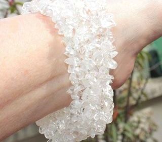 Joli bracelet stretch composé de cristaux de cristal de roche Largeur 4 cm, longueur 16 cm à plat, non porté. Extensible Pour homme ou femme Envoi en lettre suivie bulle