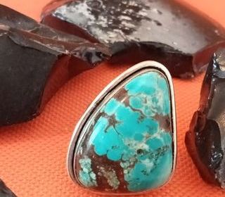 Bague argent et chrysocolle, taille 54, la chrysocolle mesure 30x22mm, état neuf.