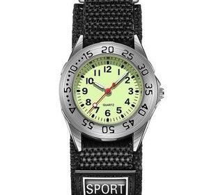 bijoux montre à quartz pour enfant, cadran rotatif et chiffres arabes, avec son bracelet velcros nylon de couleur noir; étanche, lumineuse marque bull d'eau la montre Cet