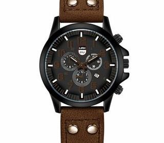 Montre à quartz bracelet en cuir étanche pour homme, chronographe date horloge décontractée, haute qualité, luxe Cette montre élégante est fabriquée en cuir véritable de haute q