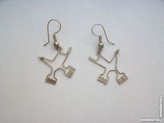 Boucles d'oreilles pendant artisanales, main de Nazca. Jamais portées. Argent allemand, non allergique. hauteur totale 4 cm, largeur 2cm.
