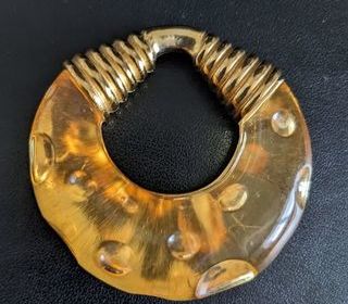 Pendentif Christian Dior crée en 1995 pour le parfum Dolce Vita. Dimensions 5,7 x 5,7 cm. Une face dorée métal et une face résine. Très bon état. Prix constaté sur d'autres sites :