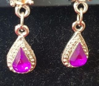 Boucles d oreilles argentées et violettes neuves 3 cm de long 2 e