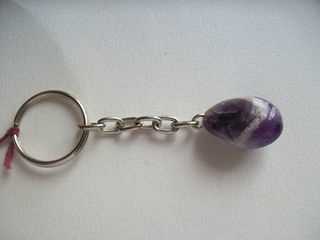 Porte clés, bijou de sac portable avec une véritable améthyste (pierre précieuse). Hauteur totale 9cm Largeur 3cm. bagagerie