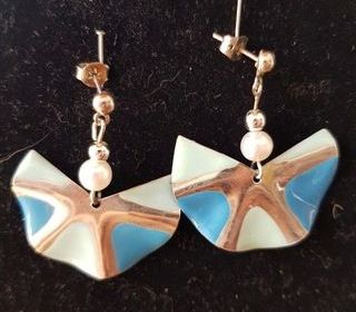 Boucles d'oreilles pendantes argentées et bleues neuves 3,5 cm 3 e