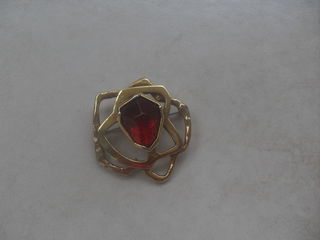 Belle broche vintage - marque Georges Rech - support doré avec pierre rouge
