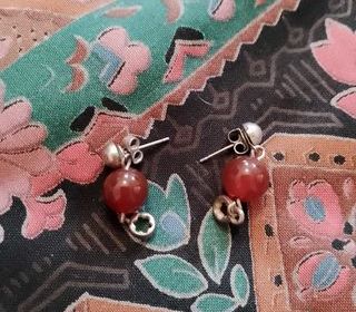 ces boucles d'oreilles en métal foncé et perles de plastique oranges sont en très bon état.