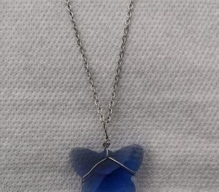 Je vends ce très joli pendentif Papillon bleu en cristal de verre Le papillon est monté en pendentif sur une chaine en acier d'une longueur réglable de 40 à 45cm L'ensemble e