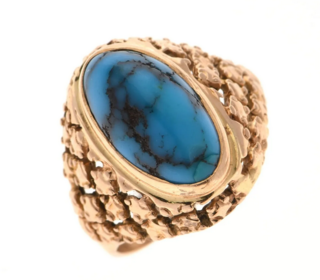 Chevalière / bague Or jaune 18 carats - 750 millièmes Sertie d'une Belle Turquoise véritable Poinçons présents Poids : 6,5 g - T54/55 * Je ne vends pas au poids et ne