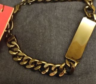 Superbe gourmette acier noir avec plaque incrustée de cristaux/strass multicolores. Jamais portée. Avec étiquette. Kurt Geiger London.