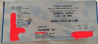 Vend une place de concert carré d'or de kendji Girac les 10 ans à l'Arena Futuroscope de Poitiers le 27 février 2026 . 60€