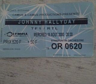 Fans de Johnny Hallyday ' vds 5 places de concert de Johnny Hallyday a l'OLYMPIA de Paris le 16 août 2000 prix du billet a l' époque 520 francs . Prix 200 euros le tout. Idéal pour