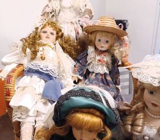 Lot de 5 jolies poupées décoratives en très bon état car sont restées dans une vitrine.