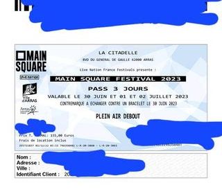 Bonjour je revends un pass de 3 jours pour assister au mainsquare festival du 30 juin au 2 juillet sur Arras. Je suis dans l'indisponibilité de m'y rendre.
