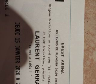 Je fais une grosse promo car le chauffeur est indisponible et j'ai deux places Laurent Gerra Brest Aréna jeudi 15 janvier catégorie 2 porte G, soit vous pouvez me faire un covoitur