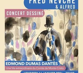 Deux billets pour le CONCERT DéSSINé " Fred Nevché & Alfred : Edmond Dumas Dantès ", ce vendredi 16 janvier 2026 de 20h30 à 22h30, au Pôle Culturel de Miremont à Plan-de-Cuques.