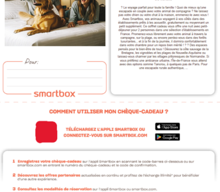 Smartbox Escapade de 2 jours avec votre animal de compagnie. Valable jusqu'au 30/10/2028 Paiement en espèces, pour une remise en main propres sur Téteghem ou chèque pour un envoi
