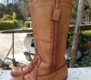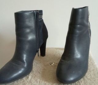 Noires, hauteur 30 cm, talon 10 cm, pattes décoratives cuir, semelle caoutchouc. Transaction/envoi via le site, retrait possible à Boutigny/Essonne (91 ou La Queue-en-Brie (94).