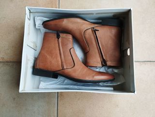 Bottine en cuir marron neuve. Pointure 41 Fermetures éclaire de chaque côté de la bottine