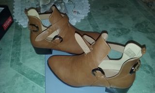 Vend bottines femmes taille 41, couleur Camel neuve jamais portés à venir chercher sur place.