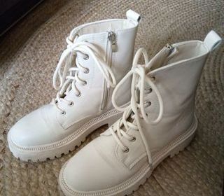 bottines à lacets et fermeture éclair blanches - taille 37 - style rangers en synthétique Remise en main propre possible sur Paris A LIRE : 95250 = Beauchamp - expédition poss