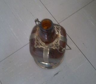 Rare carafe à liqueur modèle George Sand avec pieds et anse torsadés, en verre soufflé couleur ambre pour la panse et bleu pour le bouchon et les pieds et l'anse, époque, fin 19