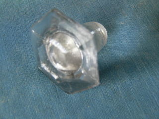 Vends 3 bouchons de carafe en verre: 1 à tête hexagonale de 43mm/plats, hauteur de 42mm diamètres du cône 22 & 18mm, poids 55gr. 1 à tête lisse & soufflée de 37mm, hauteur 94