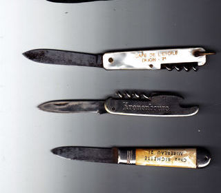 634 quatre petits canifs couteaux de poche collection bon état d'usage 1 / Café de lEtoile DIJON - 21 - Matière:Lame: Manche: voir scann avec tire-bouchon - Longueur totale
