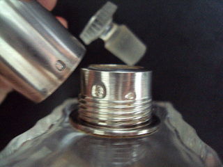 Superbe flacon ancien en cristal ? (jolie sonorité cristal ou du verre) à cannelures avec un petit bouchon cristal pour fermer le flacon, couvert par un bouchon en argent massif tê