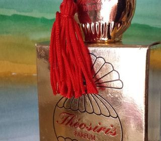 MINIATURE "THEOSIRIS" DE "GUY BOUCHARA" 5ML EN PARFAIT ETAT DANS SA BOITE D'ORIGINE . RARE FLACON DORE ET BOUCHON NOIR
