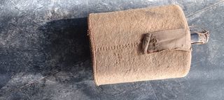 Gourde individuelle et réglementaire du soldat anglais pendant la grande guerre de 14/18, encore largement utilisée pendant la seconde. D'origine en bon état avec sa housse d e pro