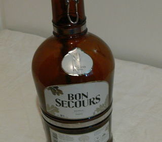 Vends 1 cruchon de 2 litres, ayant contenu de la bière belge (voir l'étiquette), en verre de couleur marron, doté d'un bouchon mécanique en porcelaine335mm & d'une poignée ciselée