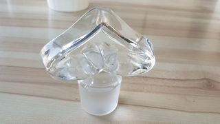 Très bon état, je signale un petit éclat ( visible sur photos ) sur la base. Non visible quand il est placé sur le flacon d'origine. 10, 5 cm de haut sur 10 cm au plus large.