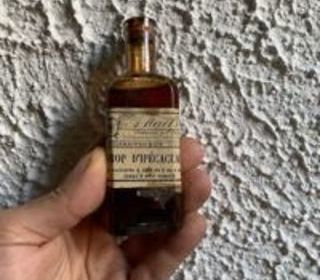 rare flacon plein, médecine vintage, sirop d'ipécacuanha. etiquette et bouchon d'origine. expédition possible à la charge de l'acheteur