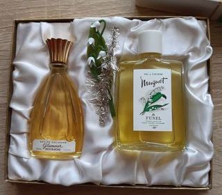 Coffret Glamour : - n° 4545 - de Bourjois Paris France - Année : 1950 - Coffret vert & blanc 18.5 cm x 15.5 cm - 1 petit rectangle blanc imprimé de fleur et de sa marque BOU