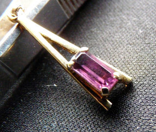Boucles d'Oreilles Dorées en forme de A Majuscule serties de 2 petites Améthystes taillées rectangulaires - Vintage années 1980 Et pourquoi un A majuscule ? Et bien parce