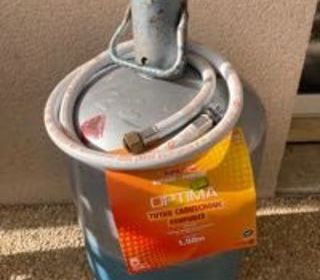 bouteille de gaz propane, avec 10 kilos de gaz restant. vendu avec un tuyau renforcé de 1,5 mètres, validité 2032. plus d'informations sur simple demande.