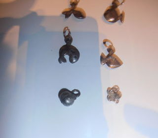 Lot de 6 jolies breloques, en métal argenté inoxydable, en forme d'animaux. A accrocher comme des charms sur un bracelet, sur un porte-clés ou sur tout autre support. A coudr