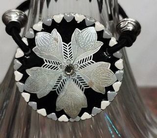 Bracelet métal argenté extensible garni d'1 strass au centre émaillé blanc et gris pour les petits coeurs et noir comme neuf! UN CADEAU MAGNIFIQUE A UNE PERSONNE D'EXCEPTION ..