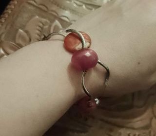 ce bracelet élastique en perles de plastique multicolores et arbre de vie en métal argenté est neuf, jamais utilisé.