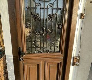 Porte d'entrée en chêne massif grille en fonte d'époque Porte d'entrée en chêne massif inspirée des immeubles et maisons de caractère parisiens. Équilibre entre patrimoine