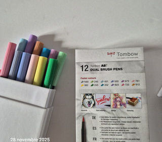 Coffret de 12 feutres pinceau ABT à double pointe - Tombow - 12P-1 - Couleurs primaires Chaque feutre pinceau dispose d'une pointe fine pour des tracés précis