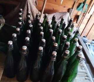 45 bouteilles de cidre vides avec bouchons hermétiques avec joints et 42 bouteilles avec bouchons en plastique,40€ le tout.