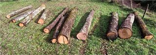 Grumes de chêne de différentes longueurs et de différents diamètres, entre 2,8 et 4,9m de long et entre 30 et 60 cm de diamètre. A venir récupérer sur place Faire offre.